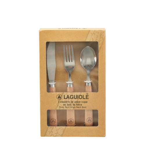 Laguiole est une marque française renommée désignant des couteaux réputés pour leur forme et pour leurs matériaux de qualité extrême. La marque à labeille propose toute une gamme en matière de coutellerie qui se veut innovante, élégante et durable.Ce set de 3 couverts de pique-nique est parfait pour les sorties en plein air: 1 x Fourchette (20cm), 1 x Couteau (20cm), 1 x Cuillière (20 cm).Il permet demporter dun coups tout léquipement nécessaire au bon déroulement du repas. Ces couverts sont en acier inoxydable antirouille ce qui accorde une bonne robustesse ainsi quune longue durée de vie aux couverts même dans un climat humide. La qualité des couverts est complétée par un manche ergonomique en bois de hêtre spécialement conçu pour une prise en main agréable. Ce set est idéal si vous êtes à la recherche dun cadeau pour faire plaisir à vos proches ou vous faire plaisir.