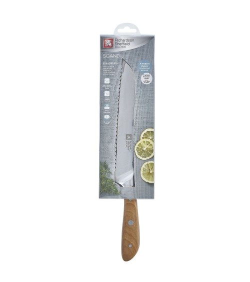 Couteau à pain de la gamme Scandi. Lame 20cm est en acier haute performance Molybdène Vanadium alliant dureté et résistance à la corrosion. Manche en bois de frêne fumé, résistant et durable.Scandi est une collection haut de gamme. Affutés de lames lisses extra-fines, les couteaux Scandi assurent une coupe nette, précise et sans effort. Chaque couteau dispose d'un manche en bois de frêne fumé aux formes arrondies pour une prise en main optimale et confortable. Expert coutelier depuis 1839, Richardson Sheffield s'est forgé une réputation sans précédent, en devenant l'un des leaders de la coutellerie au Royaume-Uni. Les couteaux permettent de satisfaire les passionnés d'arts culinaires, professionnels ou amateurs. Innovante, la marque Richardson Sheffield développe en permanence de nouveaux couteaux issus des meilleures technologies.