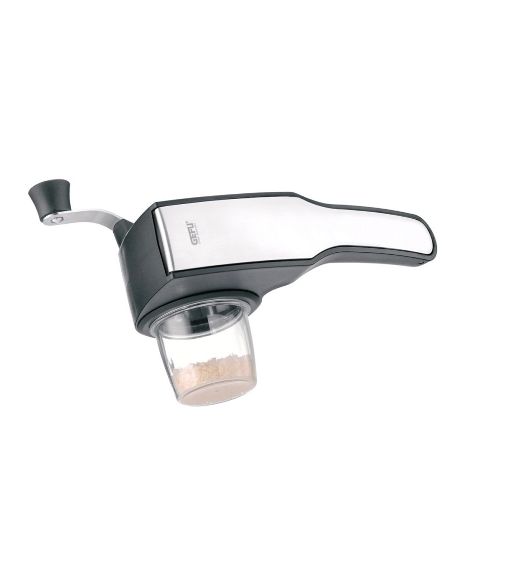 Ses deux râpes interchangeables permettent de râper fin et gros. Placer tout simplement le fromage dur, les noix, le bloc de chocolat ou l?ail dans l?entonnoir de la râpe, tourner la manivelle ? fini!- 2 râpes amovibles : fine et grosse- Pour râper du fromage/des noix /de l?ail /du chocolat en bloc- Récipient de conservation pouvant être fermé- Possibilité de râper directement dans le recipient de conservation- Râpage complet de la denrée- Changement aisé de la râpe- Démontable pour faciliter le nettoyageGarantie : 20 ansMatière principale : Acier inoxydable de haute qualité