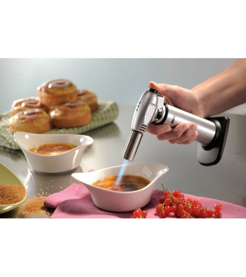 Le chalumeau de cuisine professionnel pour caraméliser, dorer ou gratiner. Modèle professionnel avec une température de ?amme allant jusqu'à 1.300 °C. Réglage progressif de la ?amme. Appareil utilisable en service continu. Autonomie : minimum 60 min. Remplissage aisé avec du gaz à briquet. Pied stable et sécurité enfant.- Qualité professionnelle- Température de flamme jusqu'à 1 300°C- Réglage en continu de la flamme- Autonomie jusqu'à 60 minutes- Remplissage avec du gaz à briquet- Pied stable et sécurité enfantGarantie : 20 ansMatière principale : Métal