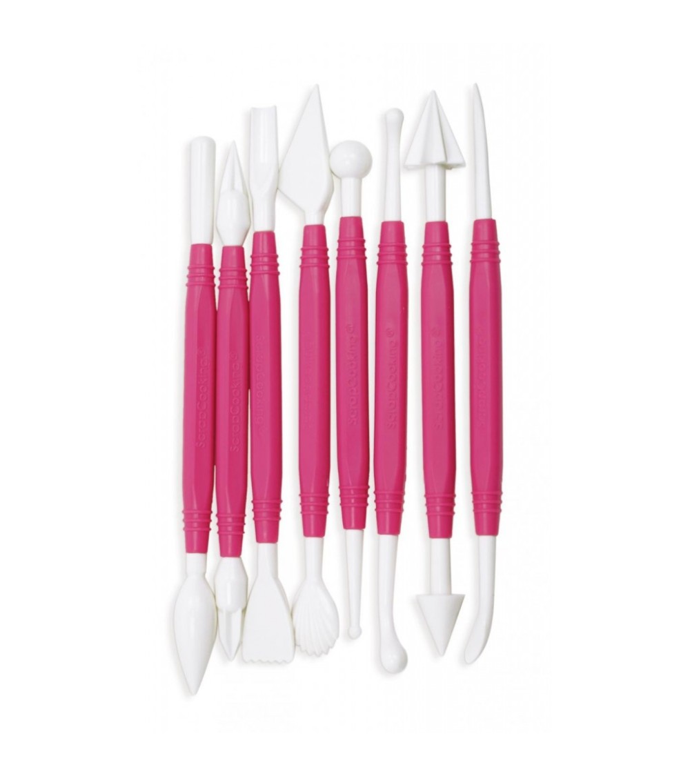 Pour mouler et confectionner des décors de pâte à sucre pour vos gâteaux, ce kit de 8 outils à embouts différents vous aidera à façonner toutes vos réalisations. Chaque outil est muni de deux embouts.
