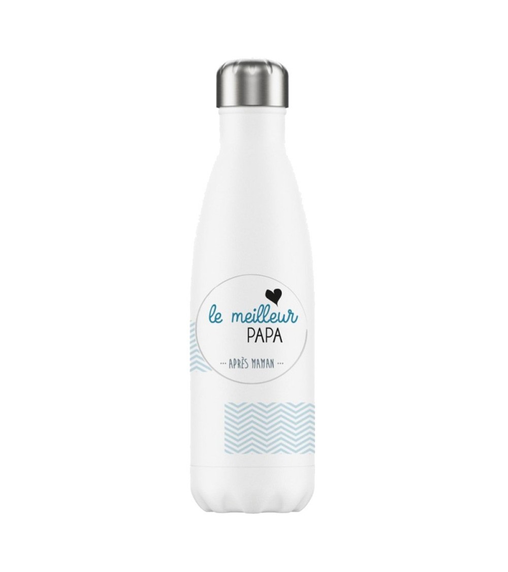 Bouteille isotherme en inox Le Meilleur Papa inox Sans BPA Contenance de 500 ml L'acier inoxydable est un matériau sain pouvant entrer en contact avec l'alimentation et les boissons chaudes ou froides sans crainte pour l'organisme, contrairement au plastique ou à l'aluminium.
