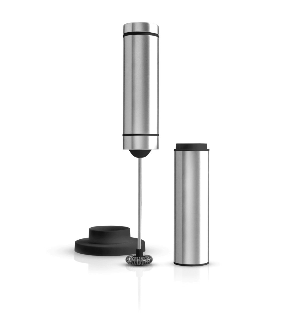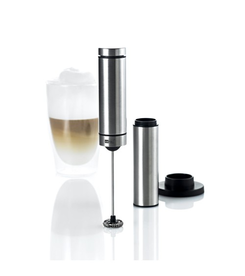 Moussoir à lait/sauce électrique avec support et piles incluses. Pour réaliser des mousses de lait, crè;mes mais aussi vinaigrettes etc. Amovible, la tête du fouet peut être nettoyée au lave vaisselle. Élégant avec son pied de rangement. Bras robuste pour une transmission parfaite de la puissance. - Micro-ondes : Non - Lave-vaisselle : Non