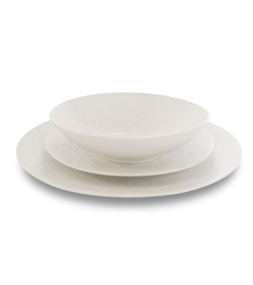 Ensemble de 6 assiettes dessert de la collection White Japan par Médard de Noblat. D'inspiration florale, White Japan est une gamme de grès texturé aux petits motifs gravés sur la surface. Pour une table printanière et contemporaine. Originaire de Limoges, Médard de Noblat perpétue un savoir-faire et une tradition de qualité depuis 1836. Les formes, aux lignes fines et élégantes dégagent une personnalisé créant des tables expressives au fort pouvoir de séduction. Aussi précis que stylés, les décors habillent les porcelaines pour les sublimer.
