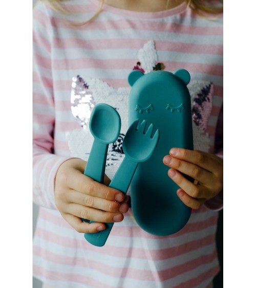 Couverts bébé en silicone We Might be TinyCes jolis couverts ; cuillère et fourchette remplissent toutes les caractéristiques pour les 1ers repas de bébé.Leur ergonomie et le silicone permettent une bonne prise en main même pour les plus petits.Le silicone permet à ces couverts d'être antidérapants, flexibles et résistants aux chocs.Ils résistent à des chaleurs de -40 °C à 230°C maximum.Dimensions14, x 3 x 1,5 cmComposition / MatièreSilicone alimentaire EntretienNettoyage au lave-vaisselleNormesConforme aux normes alimentaires EU 10/2011REACHCEÂge conseillé12mAvertissementAttention, certains colorants naturels contenus dans les aliments peuvent laisser des tâches.Pour la sécurité de l'enfant et par mesure d'hygièneAVERTISSEMENT !Ce produit doit toujours être utilisé sous la surveillance d'un adulte !Avant chaque utilisation, examiner le produit. Le jeter dès les premiers signes de détérioration ou de fragilité.Toujours vérifier la température des aliments avant de donner à manger ou à boire à l'enfant.