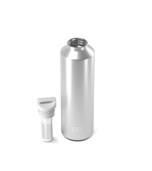La bouteille isotherme monbento® MB Steel en acier inoxydable s'adapte à toutes les aventures, quotidiennes comme exceptionnelles !Grâce à sa capacité de 500 ml, elle est la fidèle partenaire qui transporte cafés revigorants et thé fumants ou glacés pour offrir des pauses ressourçantes à tout instant.Sa double paroi permet de conserver les boissons chaudes ou fraiches jusqu'à 12 h (en fonction du contenu et des conditions d'utilisation) et assure une prise en main confortable et sûre en écartant tout risque de brûlure.Le petit plus qui fait toute la différence ? Son bouchon inclut un infuseur amovible pour pouvoir profiter de thés et boissons détox où l'on souhaite !HermétiqueSans BPA*AlimentaireIsotherme*Conformément à la réglementationDimensionsDimensions produit : 23,8 x 7 cmCapacité : 0,5 lComposition1 bouteille (matière : acier 18/8)1 bouchon (matière : PP)1 joint (matière : silicone)1 infuseur (matière : acier 18/8)