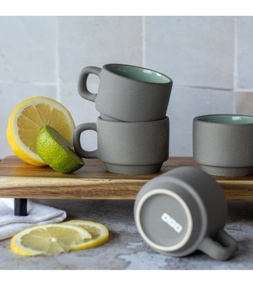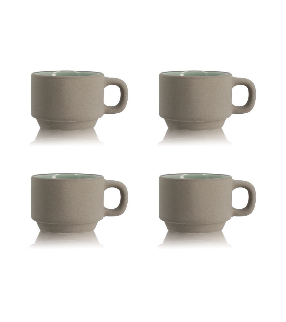 Idéal pour savourer votre thé ou café,ce lot de 4 tasses en grès vous séduira par ces lignes élégantes.Son design minimaliste et naturel apportera une touche de délicatesse à ce moment de dégustation. poids d'une tasse : 0.125kg/dimensions d'une tasse : long6.5cm, larg9cm et haut5cm. Extérieur en grès mat, intérieur brillant pour un look authentique Incompatible lave vaisselle