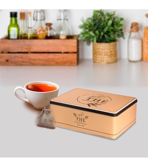 Boite Beige pour ranger le thé - Épicerie Traditionnelle En métal Longueur 22 cm x profondeur 16 cm x hauteur 8 cm Ceci n'est pas un jouet