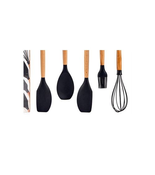 Set de 5 ustensiles de cuisine avec manche en bois de hêtre.Matière: Bois de hêtre et polypropylèneLongueur: 31.5cmCouleur: bois et noir