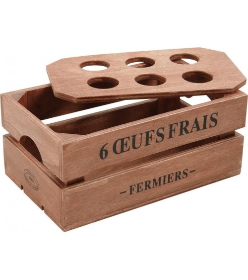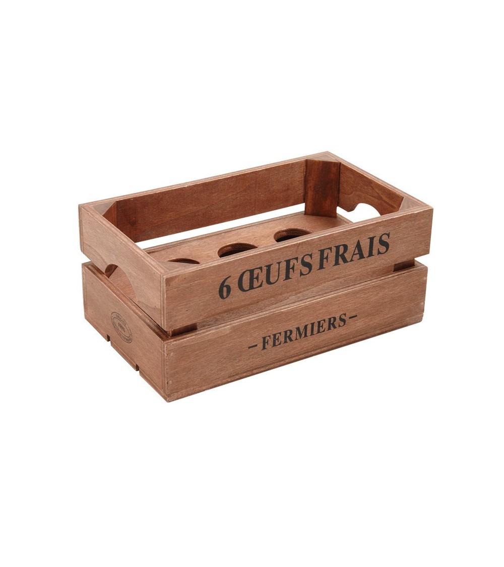 Aspect : Matériau principal : BoisDimensions : Contenance boîte : Pour 6 oeufsHauteur (en cm) : 9,00Longueur (en cm) : 20,00Profondeur (en cm) : 12,00Autres caractéristiques : Informations complémentaires : Partie centrale amovibleInscription : A l'avant et à l'arrière : 6 oeufs frais - fermiers-Poids (en kg) : 0,26 C'est l'accessoire idéal pour ranger et conserver vos oeufs. Pratique, la boîte à oeufs en bois accompagne les passionnés de cuisine. Ça va bruncher !