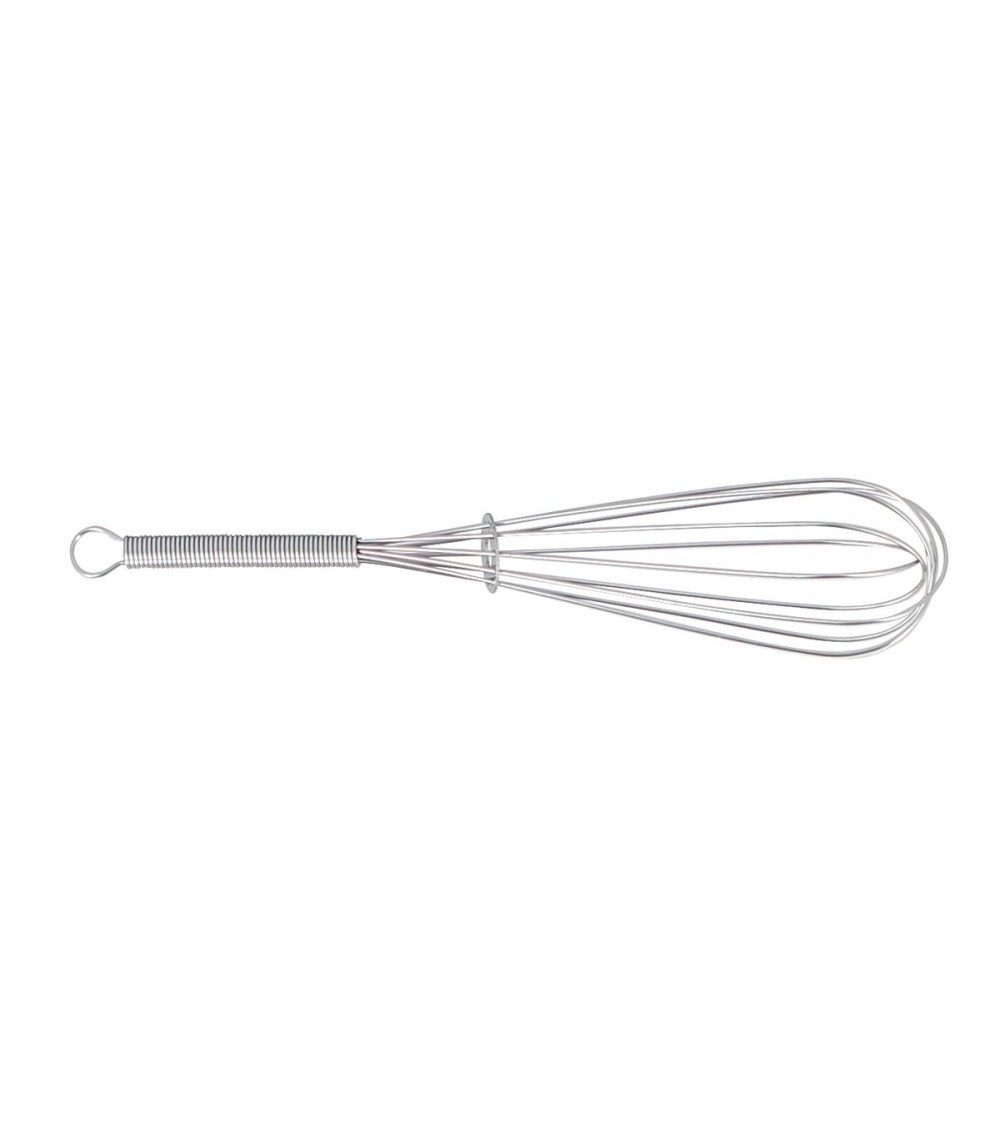 Produits à usages professionnels et particuliers. Fouet de cuisine permettant de mélanger de façon homogène les préparations salées ou sucrées, évite les grumeaux. Ce produit est idéal pour les surfaces non-adhésives. Hygiène : matériaux sains, garanti contact alimentaire Dimension du fouet : 24cm