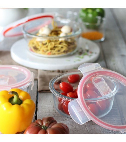Produits à usages professionnels et particuliers. Cette boite hermétique est le meilleur choix pour la cuisine. Résistante aux chocs grâce au verre borosilicate .Le verre borosilicate ne tâche pas et n'a pas d'odeur. Il est idéal pour conserver les aliments ! Grâce au couvercle hermétique à clip muni d'un joint en silicone, la conservation est optimale.Résistant : le verre borosilicate résiste aux chocs, aux changements de températures et aux fortes températuresSécurisé : matériaux sains, sans BPA, qui ne retient ni les odeurs, ni les tâches, garanti contact alimentairePratique : comptaible avec le lave-vaisselle et le micro-onde