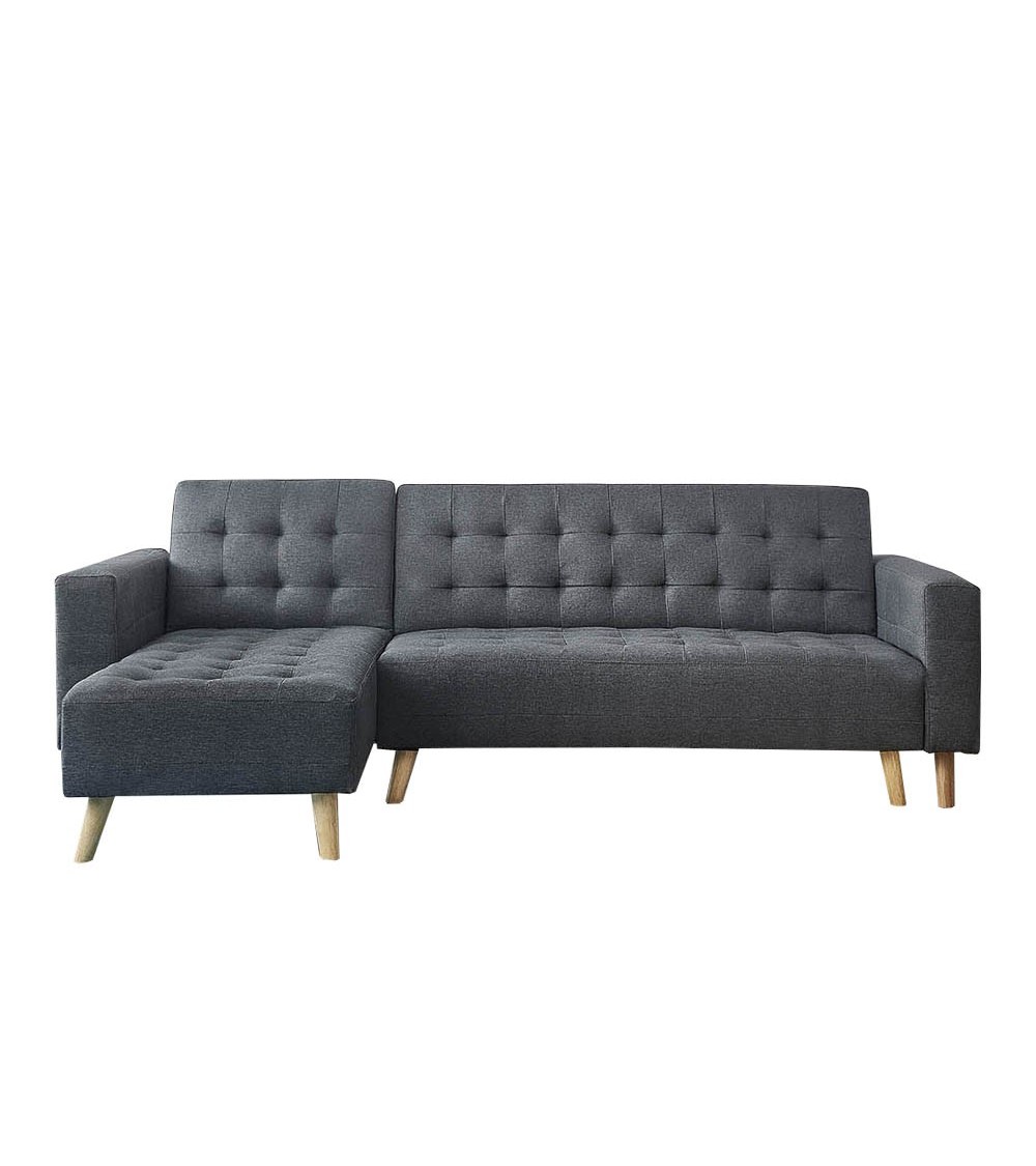 Canapé d'angle scandinave capitonné SherbrookeLaissez-vous séduire par ce beau canapé aux lignes épurées et aux détails capitonnés. Sa couture le rend original et moderne à la fois. Pratique, il est convertible et vous permet de le transformer en lit si vous accueillez des invités. Sa couleur grise se marie avec chaque couleur et chaque décoration, il s'intégrera à coup sûr à votre salon !Caractéristiques techniques :Nombre de places : 4Couleur : grisRevêtement : tissuPiètement : boisStructure : bois massif + panneaux de particulesAssise : mousse de 45 kg/m3 et suspensions ressorts zig zagNettoyage : facile avec un chiffon humidePoids maximum supporté : 180 kg (assise) + 120 kg (méridienne)Entretien :Nettoyage facile à laide dun chiffon humideDimensions :Dimension totale : 234 x 169 x 78 cmDimension de la méridienne : 78 x 169 x 36 cmDimension du lit : 156 x 111 x 36 (58) cmPoids total : 57 kgHauteur pied : 14 cmHauteur assise : 36 cmProfondeur assise : 60 cmEpaisseur de lassise : 22 cmHauteur du dossier : 78 cmEpaisseur du dossier : 15 cmDimensions de laccoudoir : 95 x 15 x 44 cmConditionnement :Le produit est conditionné dans 3 colis de : 67 x 171 x 24 cm / 25,7 kg114 x 115 x 23 cm / 20,6 kg45 x 97 x 32 cm / 10,1 kg Montage facile une notice est fournie.* Livraison pas de porte* Garantie 2 ans
