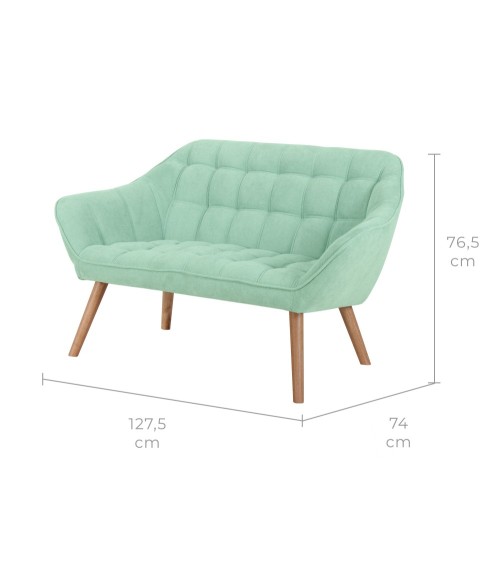 Poids : 17.2kg Dimensions: - Longueur : 127,5 cm - Profondeur : 74 cm - Hauteur : 76,5 cm- Hauteur d'assise : 43 cm- Assise : 82 x 47 cmEntretien : Déloger la poussière avec l'aspirateur muni de l'embout-brosse. Frotter le canapé avec une éponge humide et bien essorée puis sécher avec un linge propre et sec.Materiaux : Assise en tissu 100% polyesterStructure en métalPieds en bois d'hévéaMontage : Pieds à assembler, notice incluseInformations : Densité de la mousse : 24 kg/m3Poids max : 230 kgInformations colis : 129 x 69 x 57.5 cm
