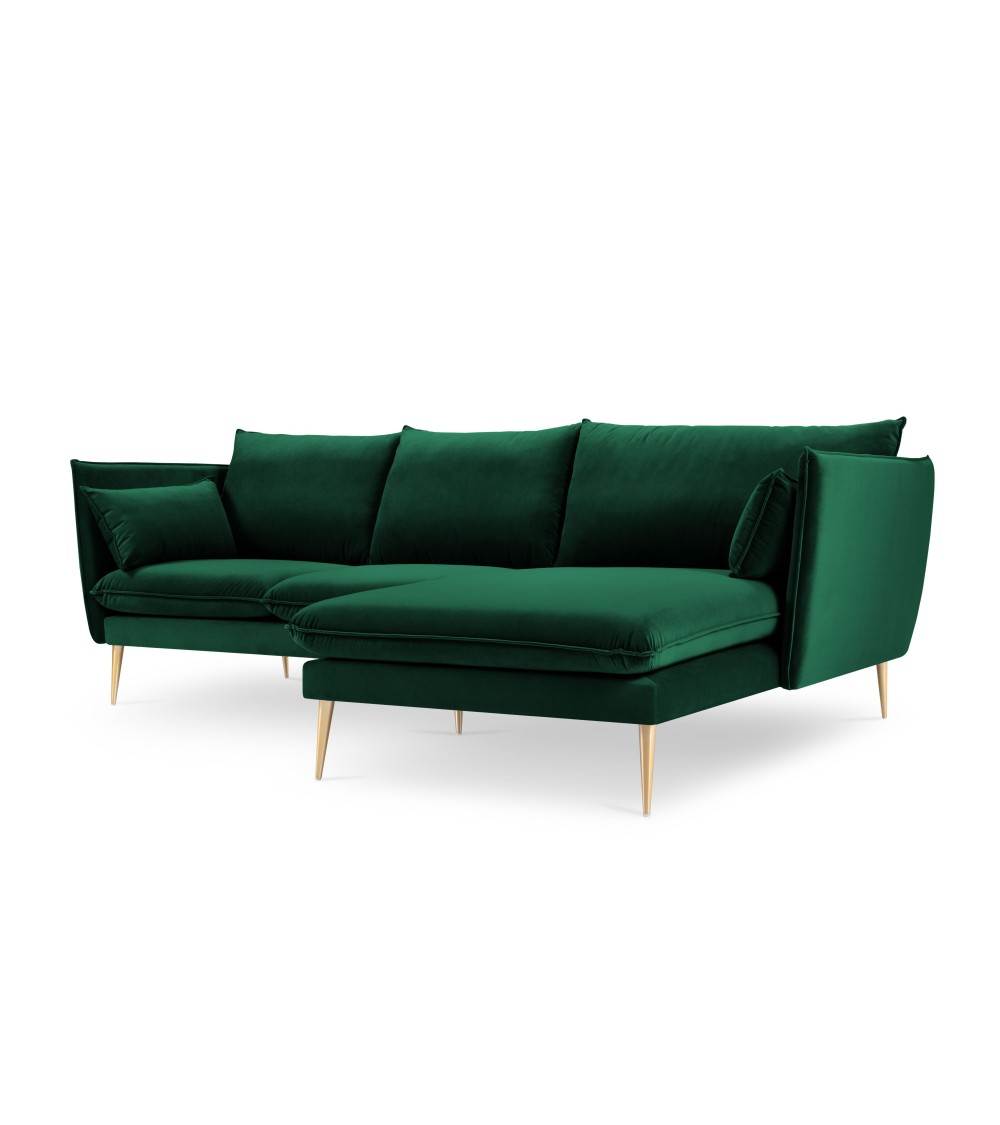Canapé d'angle 4 places en velours vert bouteille