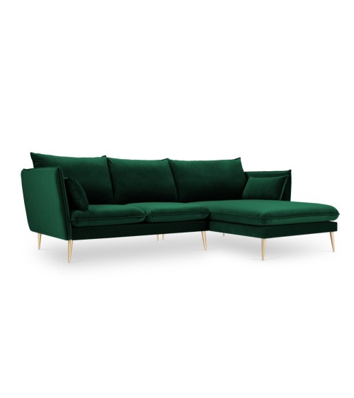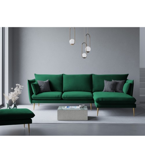 La collection Agate combine élégance et petites touches de modernité. Très confortable pour toute la famille, trouvez la pièce qui correspond le mieux à vos besoins ! Vous découvrirez dans cette collection un canapé d'angle, un canapé 4 places, un canapé 3 places et un canapé 2 places ainsi qu'un fauteuil, une chaise longue et un pouf. Tous ont un design épuré avec de grands coussins confortables et de beaux pieds métalliques fins en diagonale, dorés ou noirs. Leur revêtement en velours ajoute de la chaleur qui sera superbe dans nimporte quel intérieur.