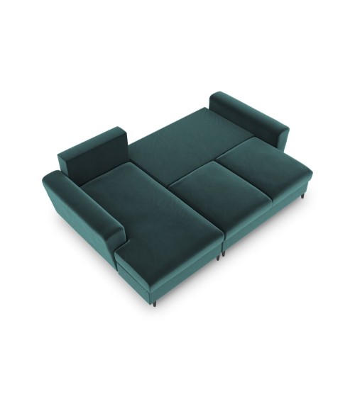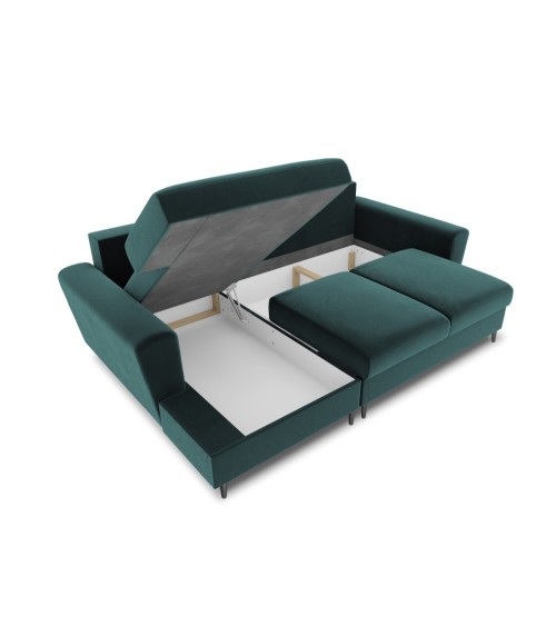 Canapé d'angle gauche convertible 4 places en tissu velours pétrole