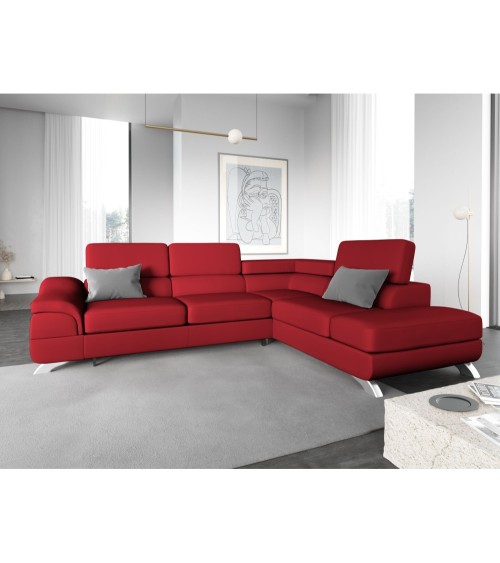 Canapé d'angle 5 places en imitation cuir rouge