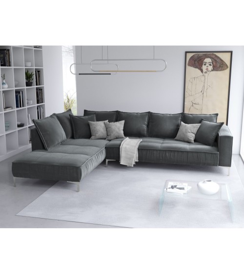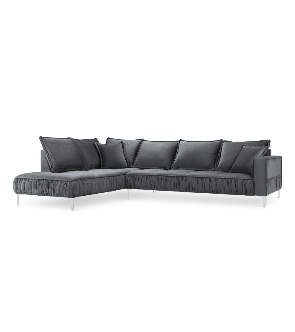 Le canapé d'angle en velours Jardanite est incroyablement élégant et tout en modernité. Il se distingue par ses détails uniques et ses formes sublimes. Ses volants décoratifs lui donnent un look unique, ses sièges sont profonds et larges et ses grands accoudoirs le rendent très confortable. Son revêtement en velours disponible dans plusieurs couleurs lui donne un style doux et audacieux. Le canapé d'angle Jardanite repose de solides pieds en métal argenté et se marie très bien avec dautres pièces de la collection.