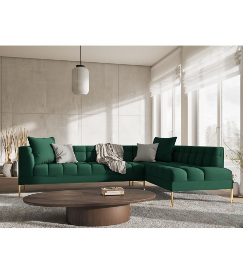 Canapé d'angle tissu structuré vert 5 places