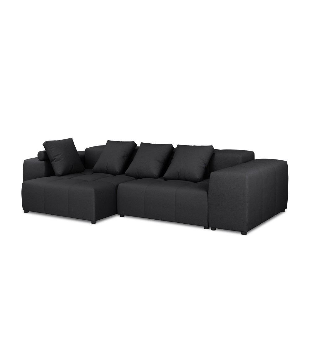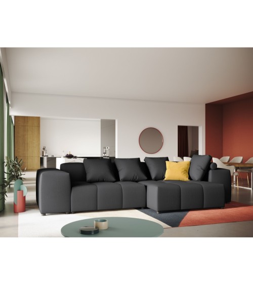 Canapé d'angle 4 places en tissu structuré noir