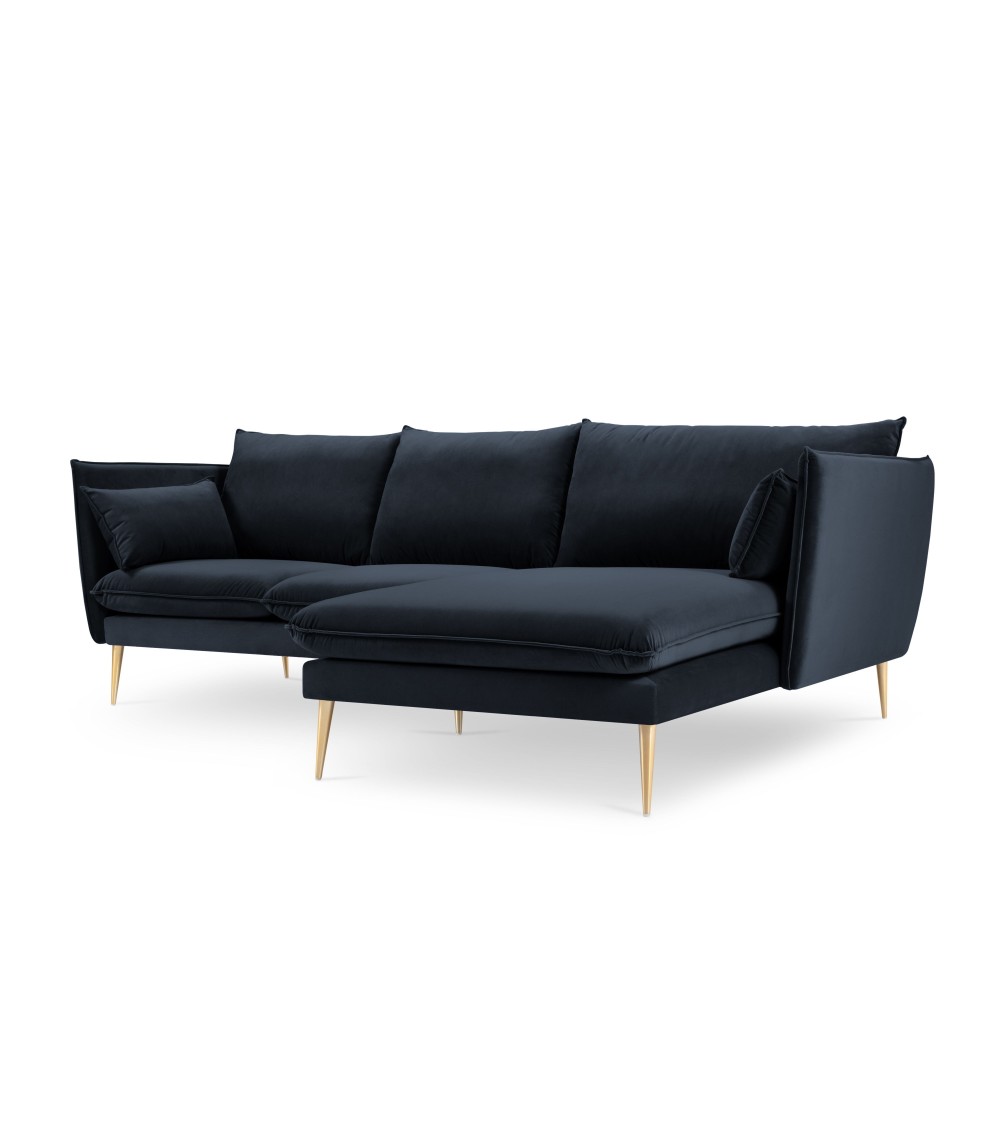 La collection Agate combine élégance et petites touches de modernité. Très confortable pour toute la famille, trouvez la pièce qui correspond le mieux à vos besoins ! Vous découvrirez dans cette collection un canapé d'angle, un canapé 4 places, un canapé 3 places et un canapé 2 places ainsi qu'un fauteuil, une chaise longue et un pouf. Tous ont un design épuré avec de grands coussins confortables et de beaux pieds métalliques fins en diagonale, dorés ou noirs. Leur revêtement en velours ajoute de la chaleur qui sera superbe dans nimporte quel intérieur.