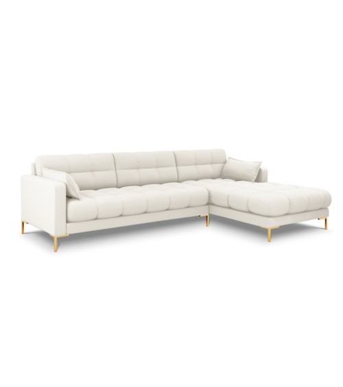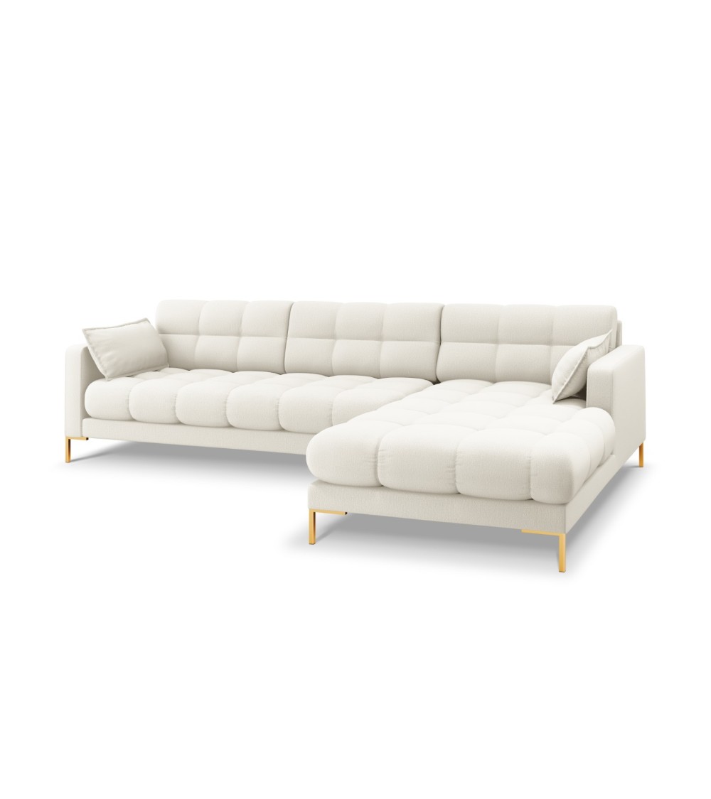 Canapé d'angle droit 5 places en tissu structurel beige clair