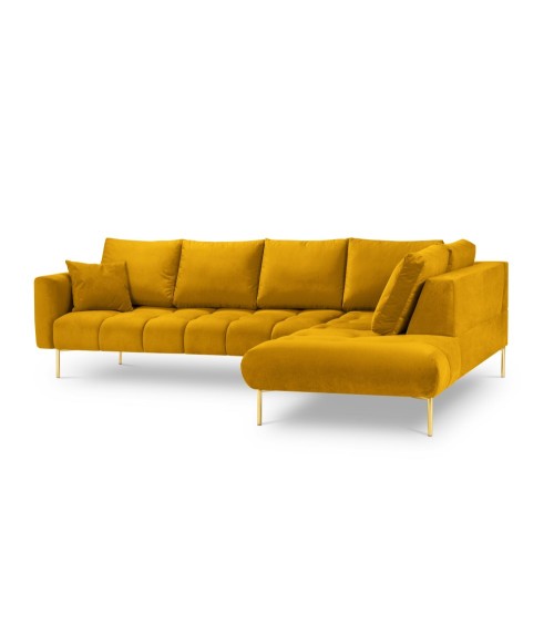 Le canapé d'angle Malvin crée une atmosphère chaleureuse et élégante au sein de votre intérieur ! Confortable et accueillant, ce canapé est doté d'un siège touffeté et de grands coussins en peluche pour le dossier et les côtés. Détente assurée. Son revêtement en velours lui donne un look exceptionnel tandis que ses pieds métalliques arrondis noirs ou dorés qui surélèvent le canapé au-dessus du sol le rend pratique puisqu'il devient facile de passer l'aspirateur.