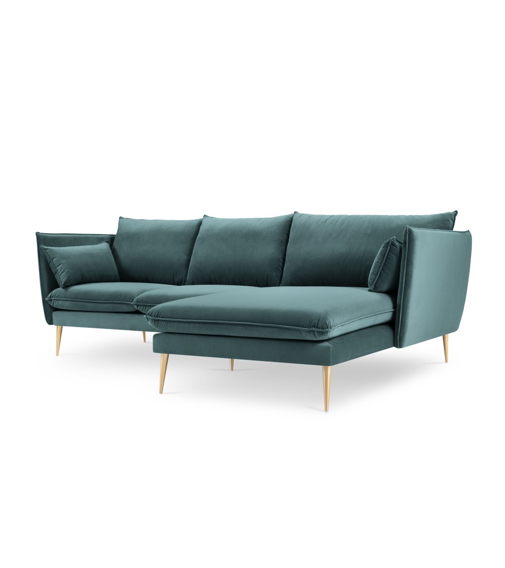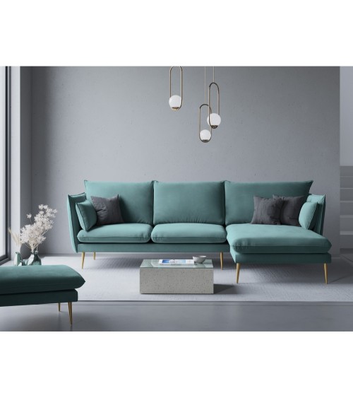 La collection Agate combine élégance et petites touches de modernité. Très confortable pour toute la famille, trouvez la pièce qui correspond le mieux à vos besoins ! Vous découvrirez dans cette collection un canapé d'angle, un canapé 4 places, un canapé 3 places et un canapé 2 places ainsi qu'un fauteuil, une chaise longue et un pouf. Tous ont un design épuré avec de grands coussins confortables et de beaux pieds métalliques fins en diagonale, dorés ou noirs. Leur revêtement en velours ajoute de la chaleur qui sera superbe dans nimporte quel intérieur.