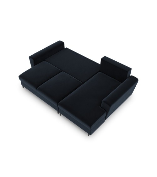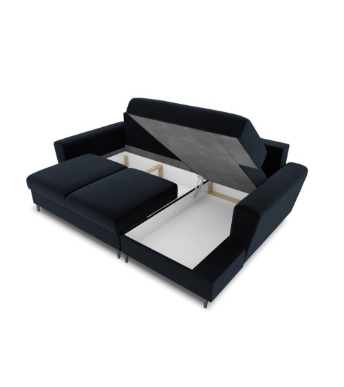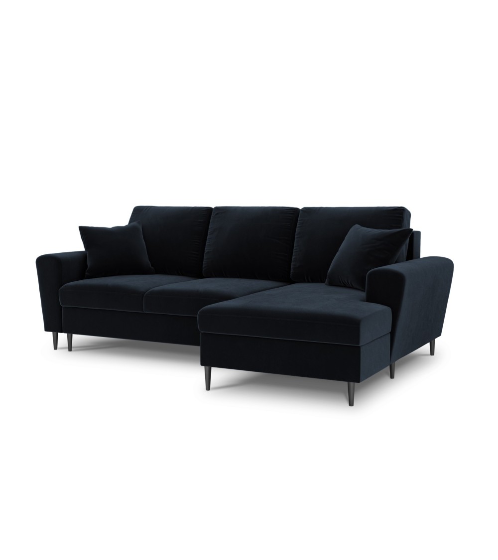 Canapé d'angle droit convertible 4 places en tissu velours bleu foncé