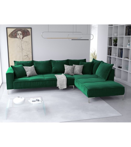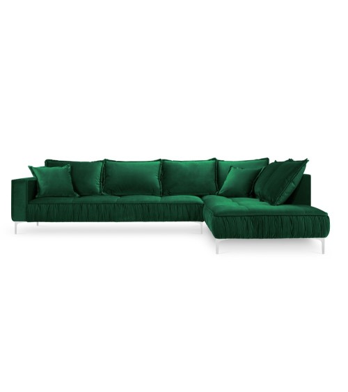 Le canapé d'angle en velours Jardanite est incroyablement élégant et tout en modernité. Il se distingue par ses détails uniques et ses formes sublimes. Ses volants décoratifs lui donnent un look unique, ses sièges sont profonds et larges et ses grands accoudoirs le rendent très confortable. Son revêtement en velours disponible dans plusieurs couleurs lui donne un style doux et audacieux. Le canapé d'angle Jardanite repose de solides pieds en métal argenté et se marie très bien avec dautres pièces de la collection.