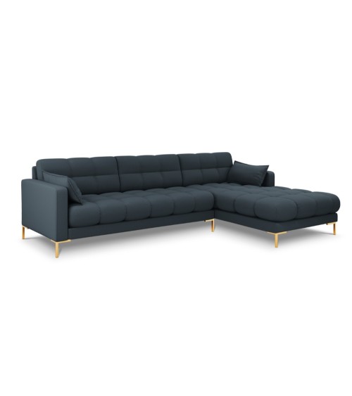 Canapé d'angle droit 5 places en tissu structurel bleu