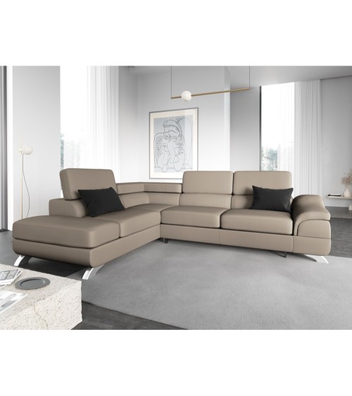 Notre canapé d'angle Onyx est non seulement très moderne et presque futuriste, mais il est aussi incroyablement élégant, polyvalent et fonctionnel. Onyx est parfait pour ceux qui recherchent un grand canapé ! Il est particulièrement adapté aux familles et aux grands espaces intérieurs ouverts. Par sa grande taille, il fait vraiment la différence. Disponible en deux types de tissus, Onyx sadapte parfaitement à votre lieu de vie. Vous avez le choix entre des tissus structuraux et des cuirs écologiques tous deux durables disponibles dans plusieurs couleurs. Onyx dispose également d'un grand espace de couchage pour les invités et d'un espace de rangement intégré pour la literie. Les appuis-tête peuvent également être réglés et déplacés selon vos préférences. Les pieds en métal argenté massif renforcent son allure moderne tout en offrant une grande solidité et un bon soutien.