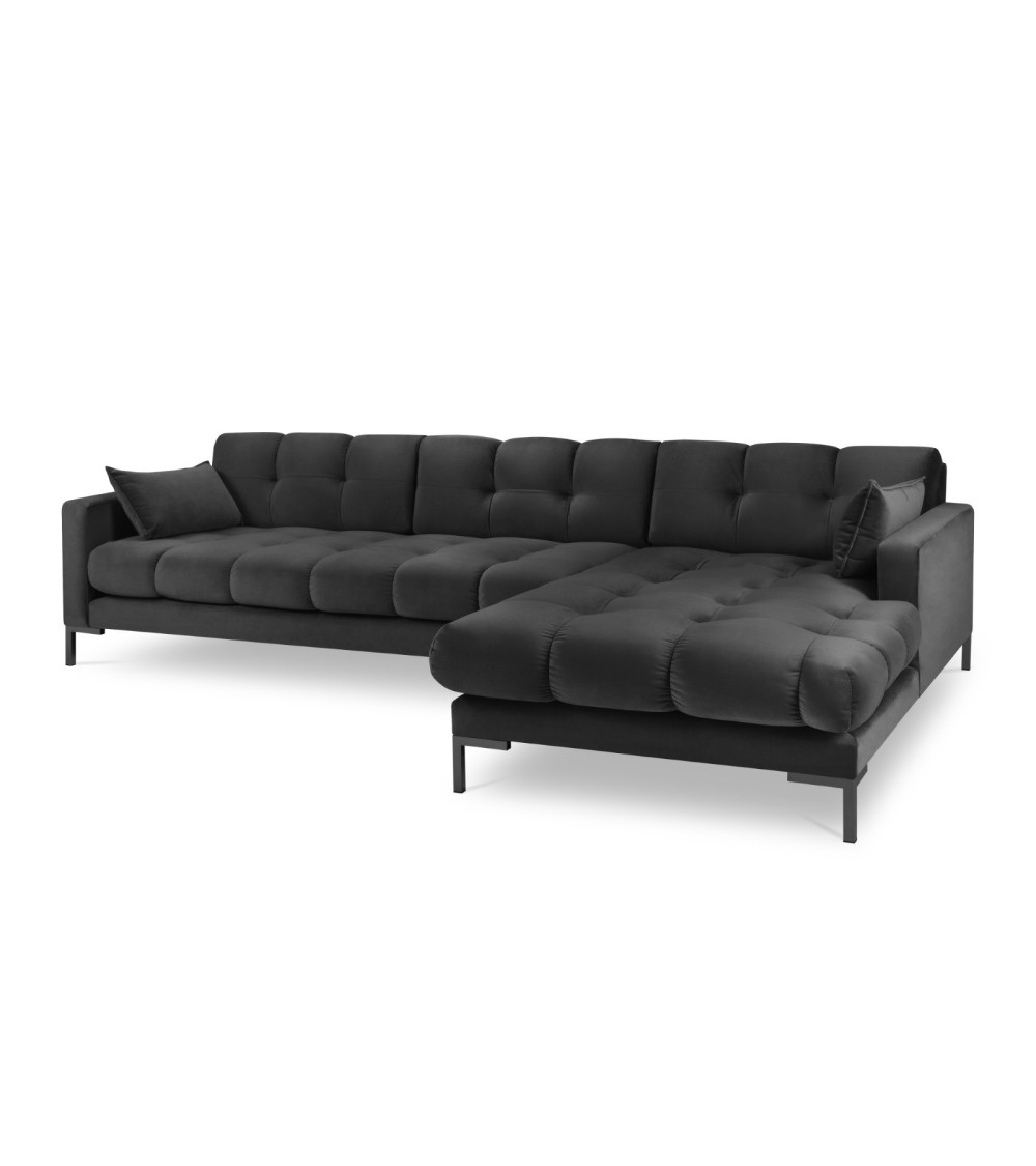 Canapé d'angle droit 5 places en tissu velours gris foncé