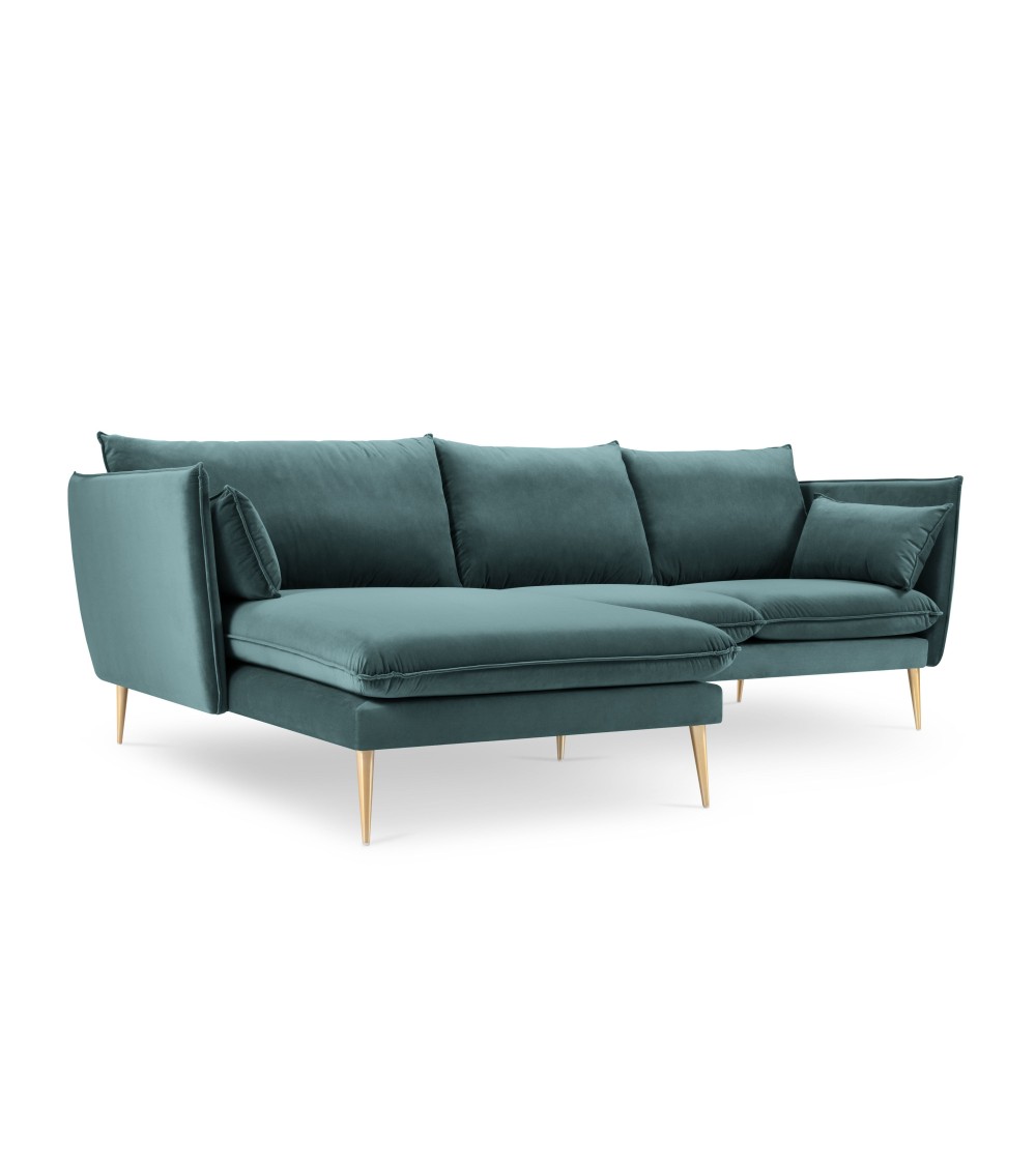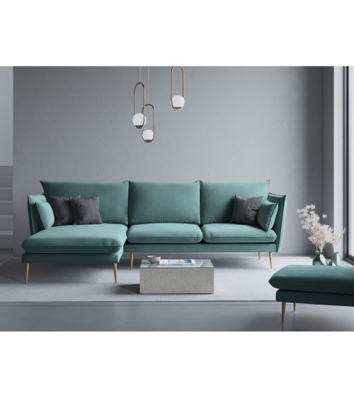 La collection Agate combine élégance et petites touches de modernité. Très confortable pour toute la famille, trouvez la pièce qui correspond le mieux à vos besoins ! Vous découvrirez dans cette collection un canapé d'angle, un canapé 4 places, un canapé 3 places et un canapé 2 places ainsi qu'un fauteuil, une chaise longue et un pouf. Tous ont un design épuré avec de grands coussins confortables et de beaux pieds métalliques fins en diagonale, dorés ou noirs. Leur revêtement en velours ajoute de la chaleur qui sera superbe dans nimporte quel intérieur.