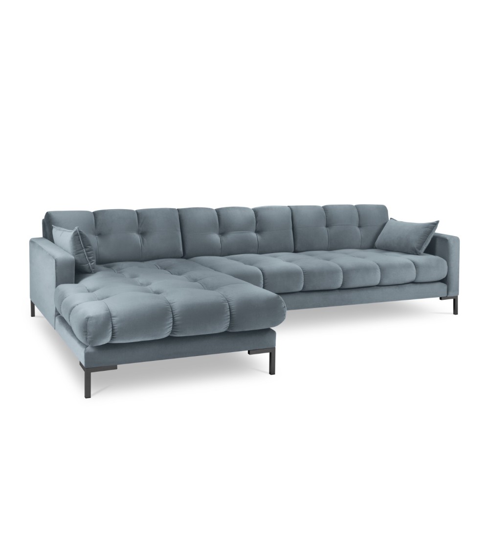 Canapé d'angle gauche 5 places en tissu velours bleu clair