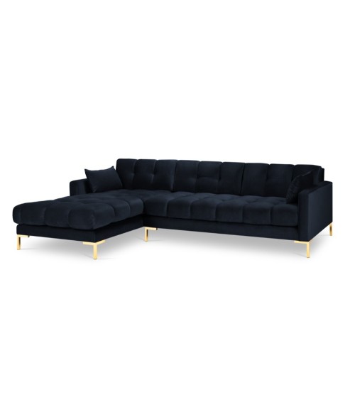 Canapé d'angle gauche 5 places en tissu velours bleu foncé