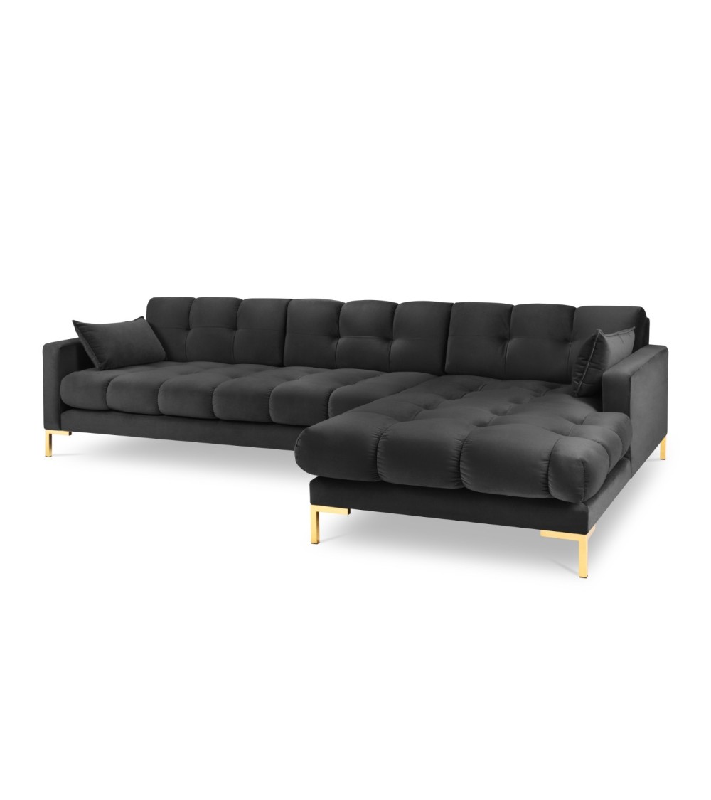 Canapé d'angle droit 5 places en tissu velours gris foncé