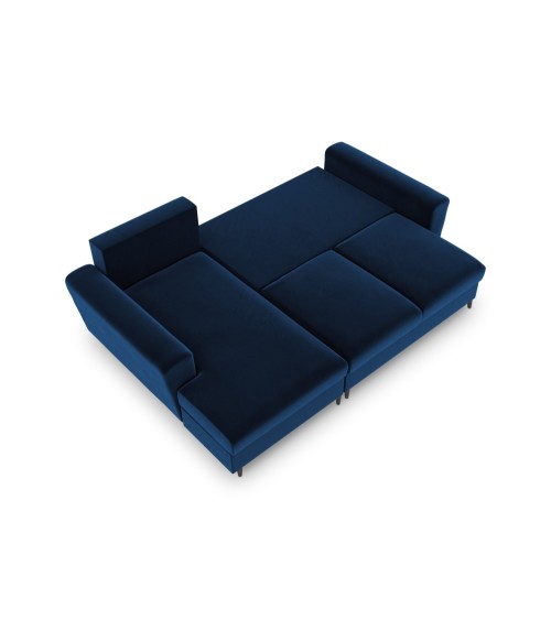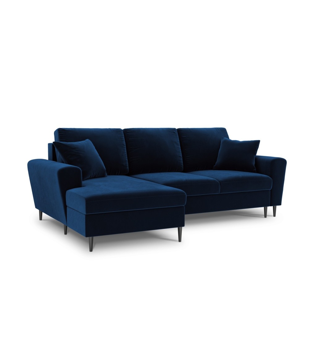 Canapé d'angle gauche convertible 4 places en tissu velours bleu roi