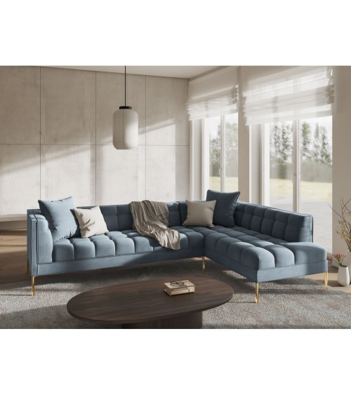 Canapé d'angle velours bleu clair 5 places