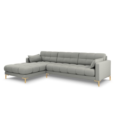 Canapé d'angle gauche 5 places en tissu structurel gris clair