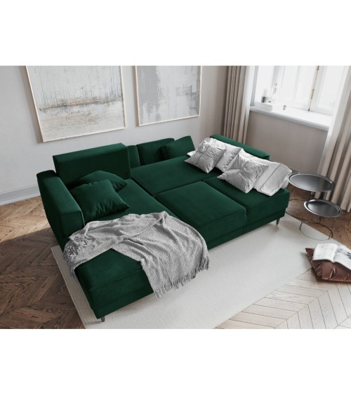 Canapé d'angle 4 places en tissu structuré vert bouteille