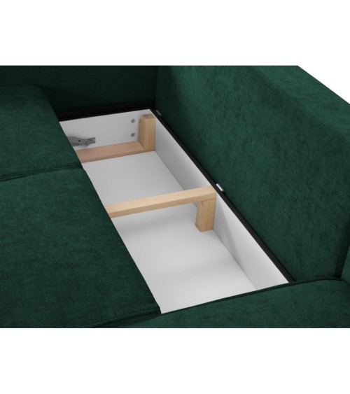 Canapé d'angle 4 places en tissu structuré vert bouteille