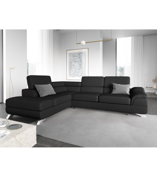 Notre canapé d'angle Onyx est non seulement très moderne et presque futuriste, mais il est aussi incroyablement élégant, polyvalent et fonctionnel. Onyx est parfait pour ceux qui recherchent un grand canapé ! Il est particulièrement adapté aux familles et aux grands espaces intérieurs ouverts. Par sa grande taille, il fait vraiment la différence. Disponible en deux types de tissus, Onyx sadapte parfaitement à votre lieu de vie. Vous avez le choix entre des tissus structuraux et des cuirs écologiques tous deux durables disponibles dans plusieurs couleurs. Onyx dispose également d'un grand espace de couchage pour les invités et d'un espace de rangement intégré pour la literie. Les appuis-tête peuvent également être réglés et déplacés selon vos préférences. Les pieds en métal argenté massif renforcent son allure moderne tout en offrant une grande solidité et un bon soutien.