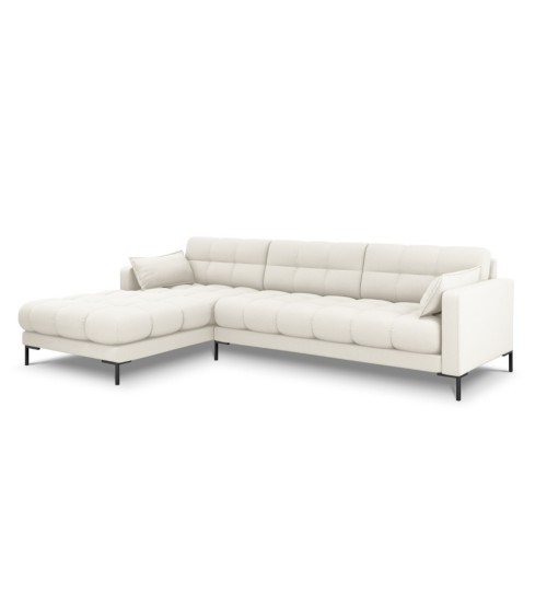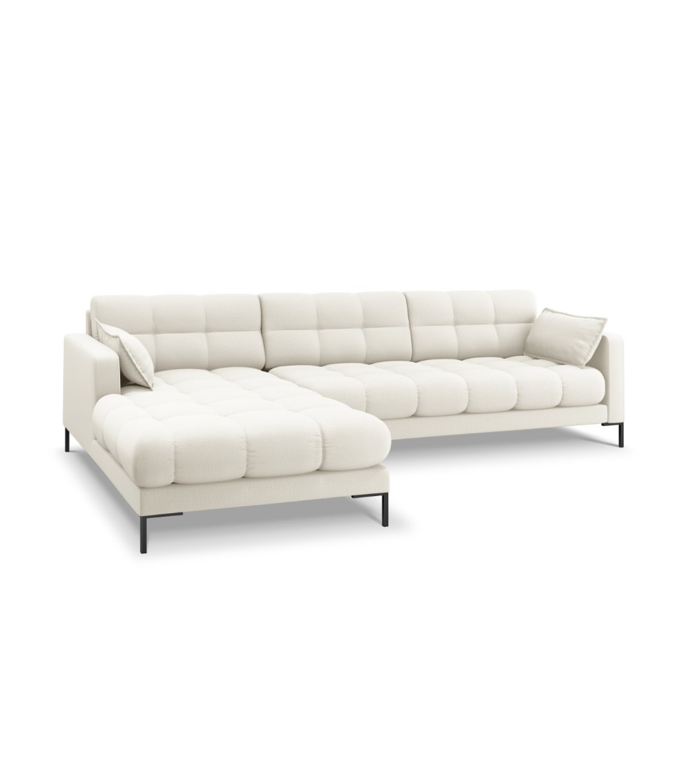Canapé d'angle gauche 5 places en tissu structurel beige clair
