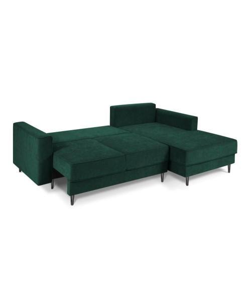 Canapé d'angle 4 places en tissu structuré vert bouteille