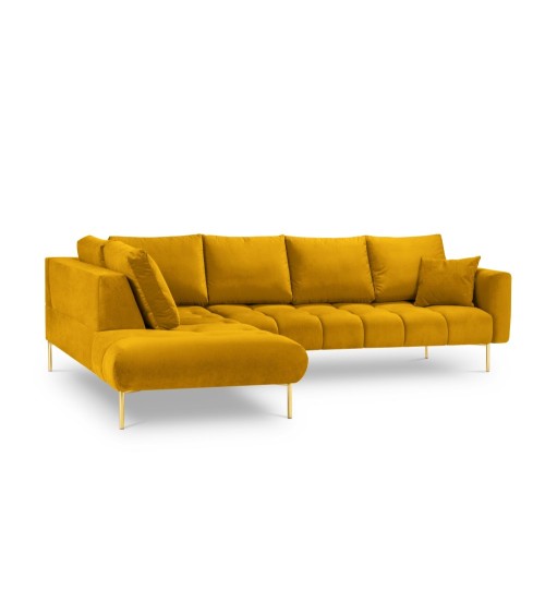 Canapé d'angle 5 places en velours jaune