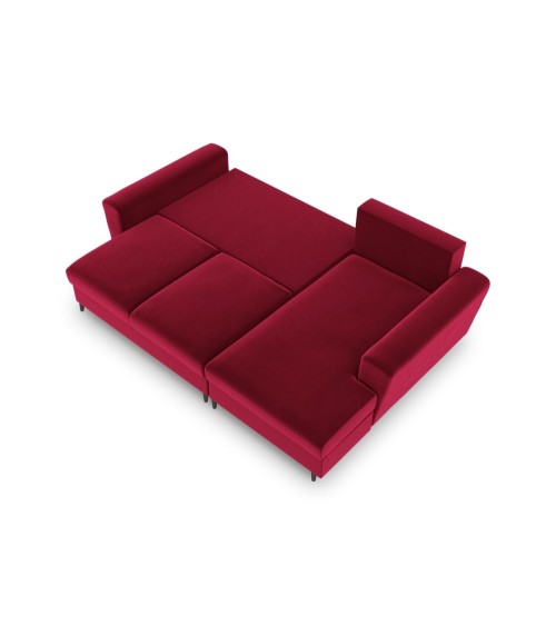 Canapé d'angle droit convertible 4 places en tissu velours rouge