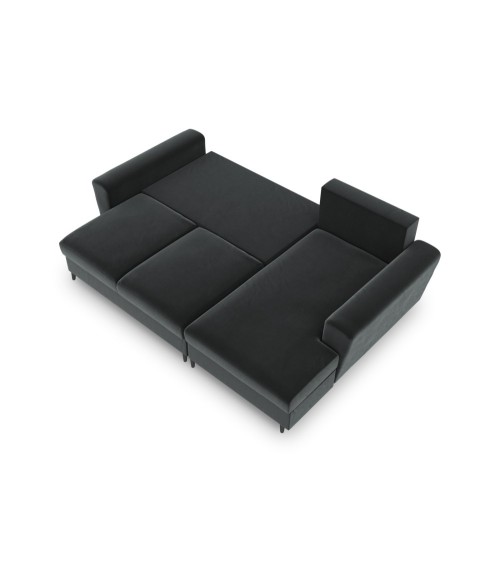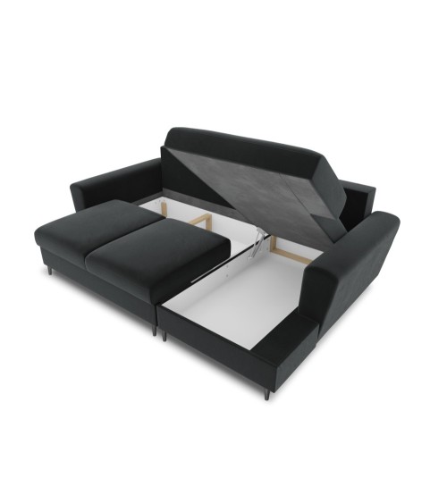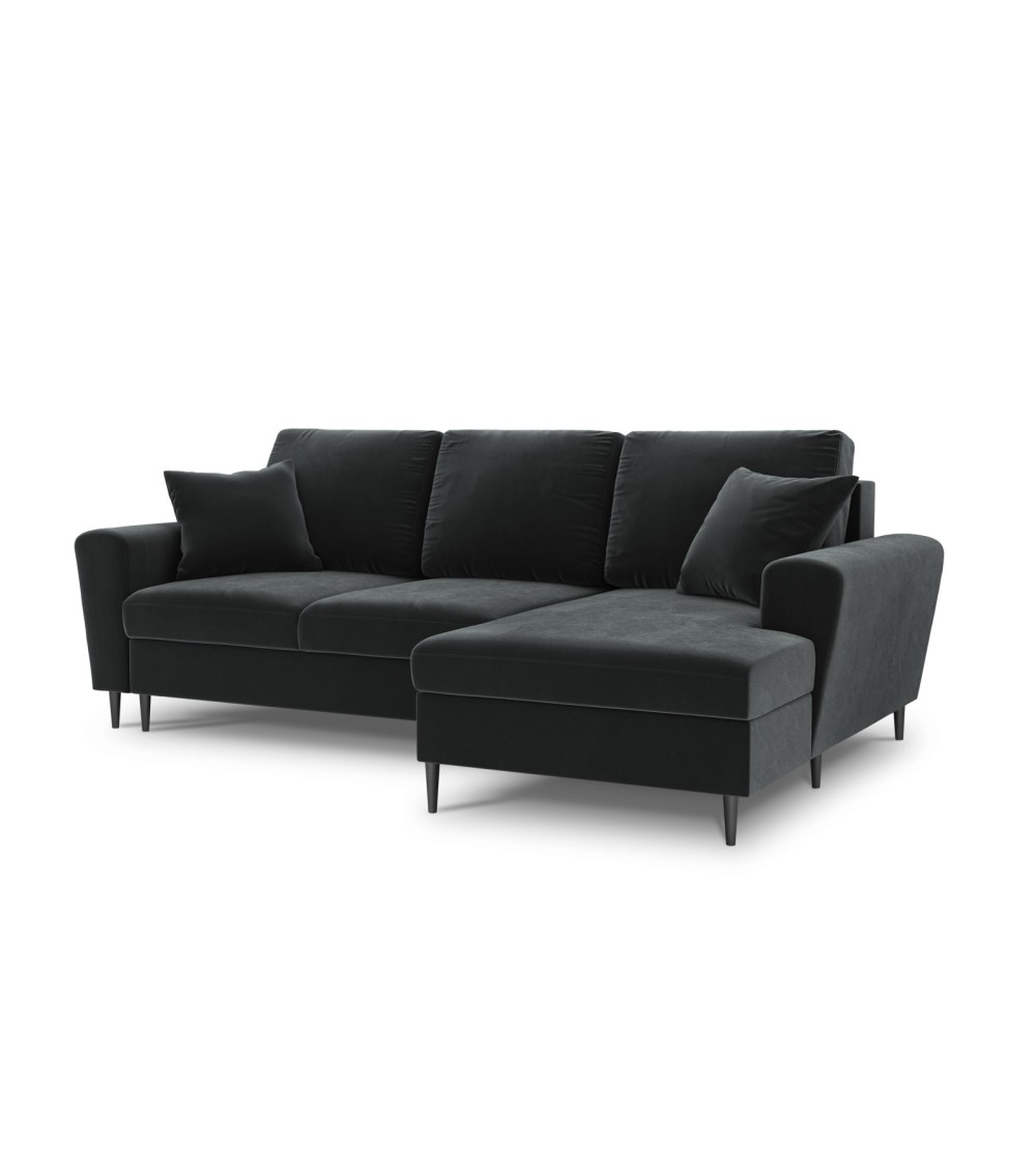 Canapé d'angle droit convertible 4 places en tissu velours gris foncé