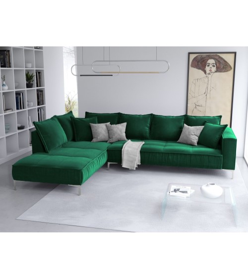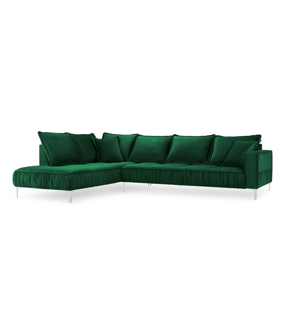 Le canapé d'angle en velours Jardanite est incroyablement élégant et tout en modernité. Il se distingue par ses détails uniques et ses formes sublimes. Ses volants décoratifs lui donnent un look unique, ses sièges sont profonds et larges et ses grands accoudoirs le rendent très confortable. Son revêtement en velours disponible dans plusieurs couleurs lui donne un style doux et audacieux. Le canapé d'angle Jardanite repose de solides pieds en métal argenté et se marie très bien avec dautres pièces de la collection.